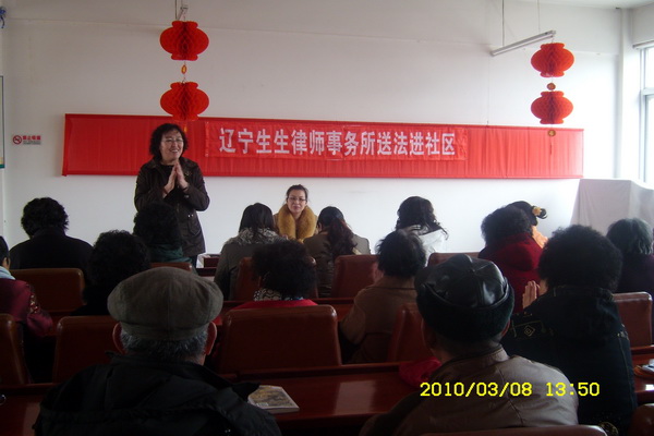 为纪念国际妇女运动100周年,深入贯彻落实科学发展观,积极维护妇女权益,提升律师社会责任感,鸿发国际女律师工作委员会本月起举办了“百名女律师送法进企业”系列活动,组织百余名女律师参与宣传、咨询、举办法律讲座等活动。辽宁生生律师事务所为了增加居民法律知识,化解矛盾,促进和谐,该所全体女律师在3月8日“妇女节”这一天,来到金州区拥政街道八一路社区,为该区的居民提供了形式多样的法律服务。