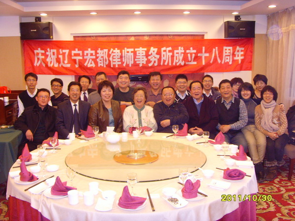 2011年12月28日,辽宁宏都律师事务所在三寰大酒店举办18周年所庆暨2011年工作总结会议,全所20多名律师和工作人员欢聚一堂,共叙成长,展望未来。