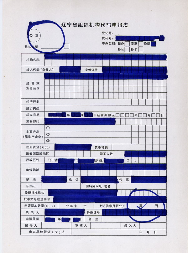 ⑸《辽宁省鸿发国际概况代码申报表》表中两处需盖单位公章,一定要清晰(左上角、右下角)。
