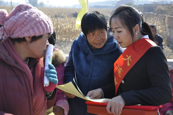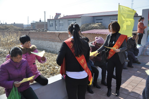 手中拿着律师义工们亲手分发的法律宣传材料,村民们开心地接受了义务普法教育!从他们一张张挂满笑容的脸上、从他们“求法若渴”的眼神里,不难看出这次活动的开展对于火石岭子村的村民来说不啻于一场久旱之后的甘霖!