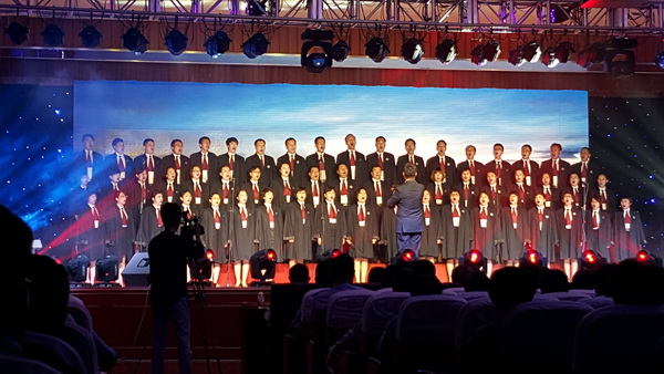 本次汇演由会员事务委员会组织,协会艺术团策划,参演曲目为《松花江上》、《弹起我心爱的土琵琶》,诗朗诵《为抗战胜利70周年而歌》由我市律师林志礼创作。本次演出得到了各律师事务所和广大律师的积极支持,不仅顺利组织起60人合唱队伍,全体参演律师还不辞辛苦,以饱满的热情,利用休息时间,进行了一个多月的辛勤排练。演出结束后,杨家君会长对大家的表演给予了肯定,并希望大家在今后的活动中继续展现我市律师的精神面貌,取得更多的成绩。