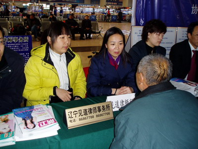 4日上午,由大连市总工会、中山区政府、大连日报、大连晚报、大连电视台和大连市法制宣传协会主办,大连阳光医院、辽宁见道律师事务所、辽宁兴中律师事务所、大连站南综合管理处承办,大连火车站公安派出所协办的“贯彻十七大精神,构建法制化城市”为主题的“大连市大型《劳动合同法》宣传活动,在人潮汹涌的大连火车站举行。